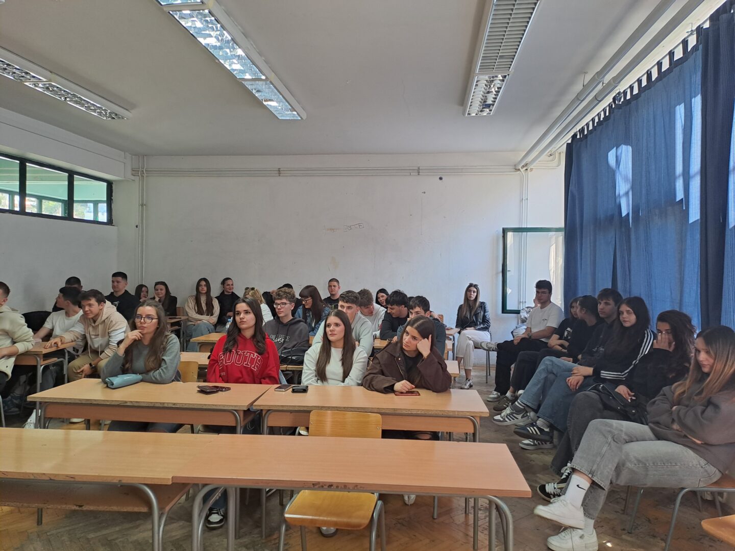 Ove godine zanimljivo interaktivno predavanje s temom „Financijske i investicijske prijevare: zašto nasjednemo i kako se zaštititi?“, održala je Anja Tkalčević iz Hrvatske agencije za nadzor financijskih usluga – Hanfa. Učenici su se upoznali s pojmom i vrstama financijskih prijevara, vidjeli su primjere platformi, dokumenata, lažnih mailova, lažnih članaka i prijevara putem poziva i društvenih mreža. Predavačica je ukazala na znakove prijevare, te kada i zašto ljudi najčešće nasjednu. Na kraju predavanja učenici su dobili nekoliko savjeta o tome kako se zaštititi od prijevara i što učiniti ako smo stupili u kontakt s prevarantskim društvom.